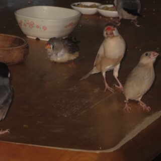 文鳥動向の備忘録 タイコ「夜会」デビュー 見上げるタイコ 昨日、小鉢で水浴びしたタイコはその余勢をかって「夜会」デビューをはたした。この子は父のような指を出せば乗ってくる良い子ではないが、すべて賢明に考えるタイプらしく、テーブルから上を見上げてじっと観察したり、通りがかりのおとなの... 2026.04.28 文鳥動向の備忘録