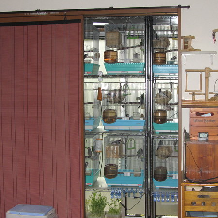 窓外の工事に落ち着かない文鳥たち