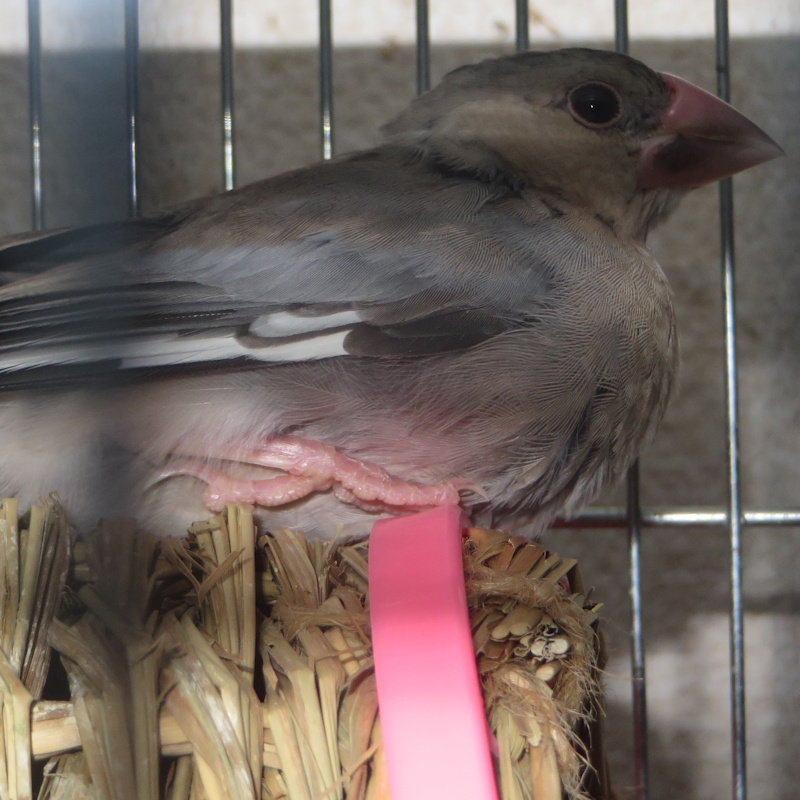 21日に、宿泊部屋の売れ残りっ子の「クロダ」が片脚を引きずるようにしているのに気づく。打撲かと思ったが、翌日捕まえてよく見ると、血色は通常のままだが脚がぶらんぶらんとしていた(内出血は確認できず)。おそらく、見ていない時に素っ頓狂に飛んで落下して骨折したものと思われたので、とりあえず、同期の3羽と同居しているカゴから1羽用に移して、治療してもらう動物病院を調べた。