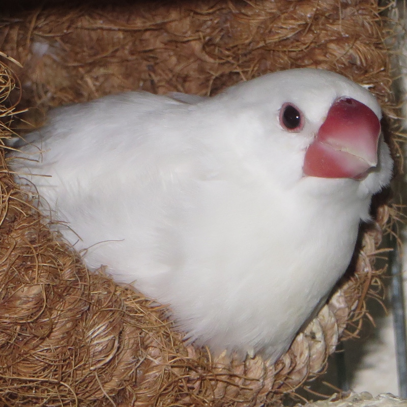 彼は、弥富系白文鳥の致死遺伝とされる完全優性(顕性)のホモ結合個体らしく、栄養吸収に問題があって食べても食べてもなかなか育たず、それから成長軌道に乗ったものの、脚が変形して、不便な生活を送ってきた。それが、加齢による衰えか、さらに静止が難しくなってパニックになり無茶な飛び方をするようになった。