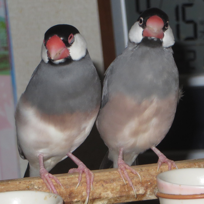 ・・・ごま塩でもパイドでも良いが、その良さを見出さず「濃い方が好き!」といった圧があれば、こういうことにもなるわけで、となると、ヒナの時からごま塩を特定できず、ややこしいことになった。しかし、これなら、特定しなくても桜に混ざって、ごま塩、江戸系白文鳥の遺伝子は生きながらえるものと思う。ものは考えようだ。
